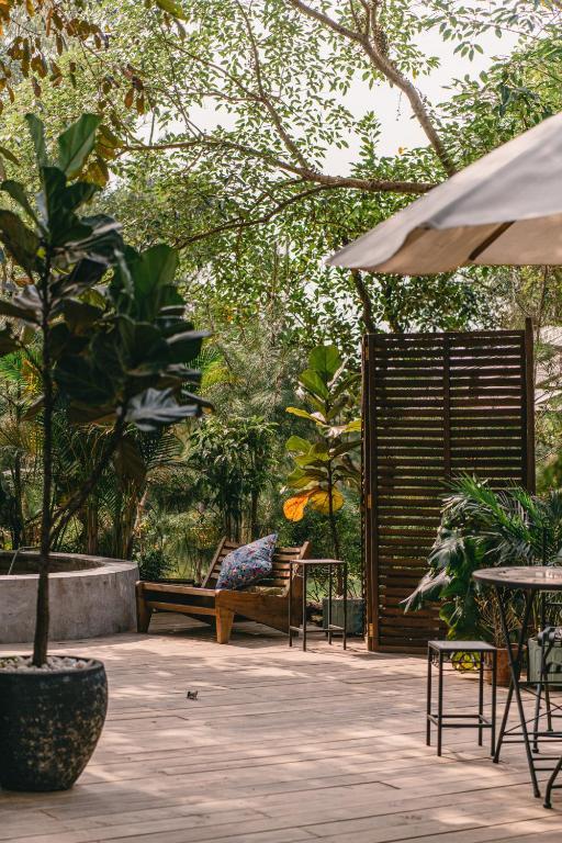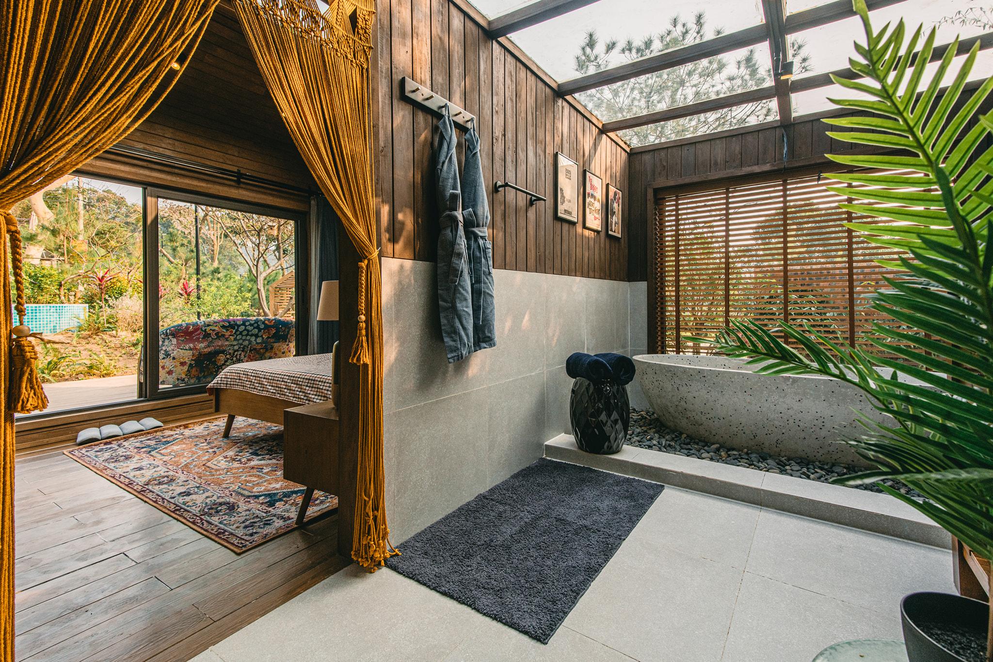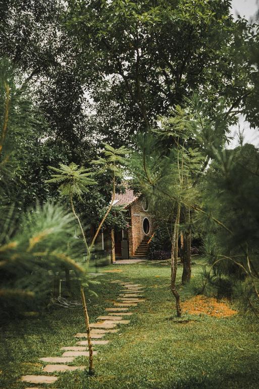 Khu vườn rộng tới gần 2000m2 bao gồm 03 căn nhà: Brick, Chic, Mận với phong cách khác nhau.